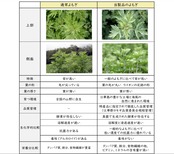 :江華島よもぎと他産地の比較表
